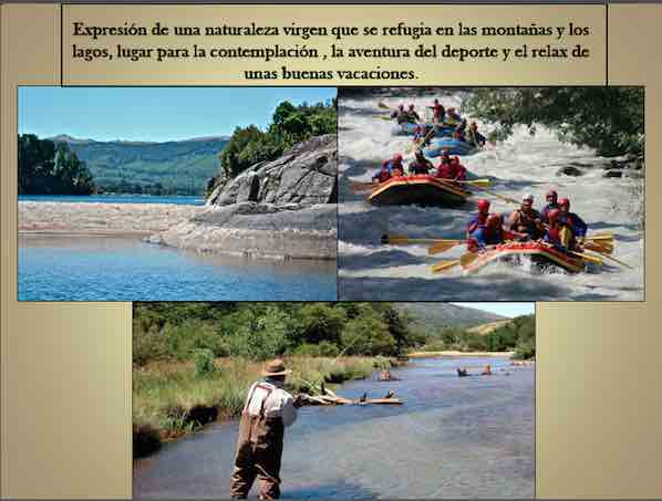 Pesca deportiva con mosca, caminatas, escalamientos,mountain bike, esquí, snowboard, Trineos canotaje,rafting, trekking, windsurf, buceo, cabalgatas, sulkys, carreras de caballos, motocross, travesias 4x4, avistaje de aves , cacería fotográfica. Fiestas criollas y lugareñas, excursiones, paseos, servicios de guias.